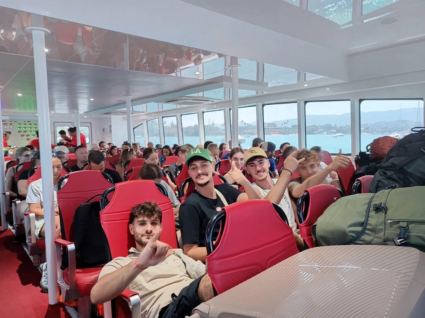 Nuestro Catamarán de Alta Velocidad cuenta con un diseño de doble casco. A diferencia de las lanchas rápidas estándar que golpean contra las olas, nuestro barco "corta" el agua con una estabilidad inigualable. Como se ve en las fotos de nuestros pasajeros, puedes relajarte, dormir o moverte por la cabina con total tranquilidad.