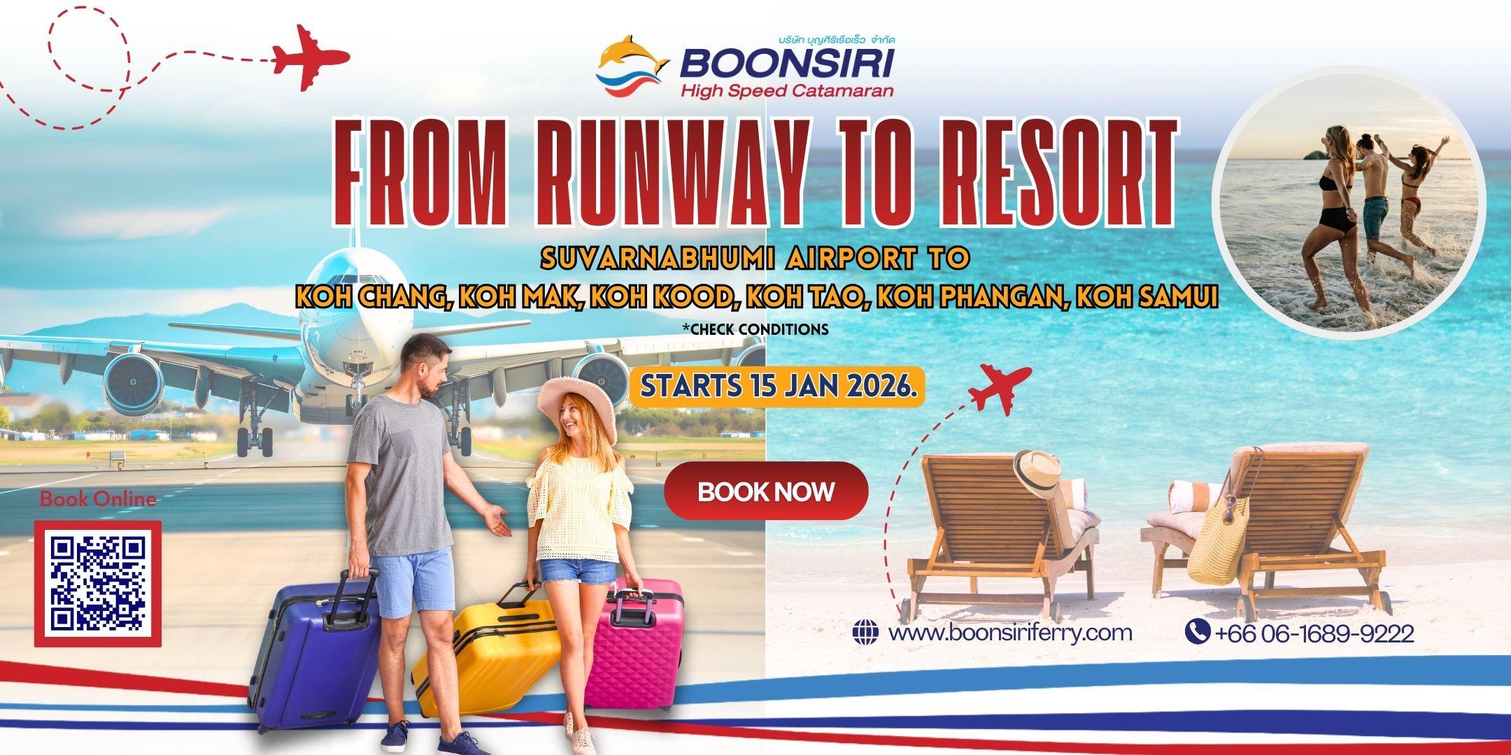 Great news for travelers! Starting January 15, 2026, Boonsiri Ferry launches the "Runway to Resort" service. Skip the Bangkok city traffic and head straight to paradise.