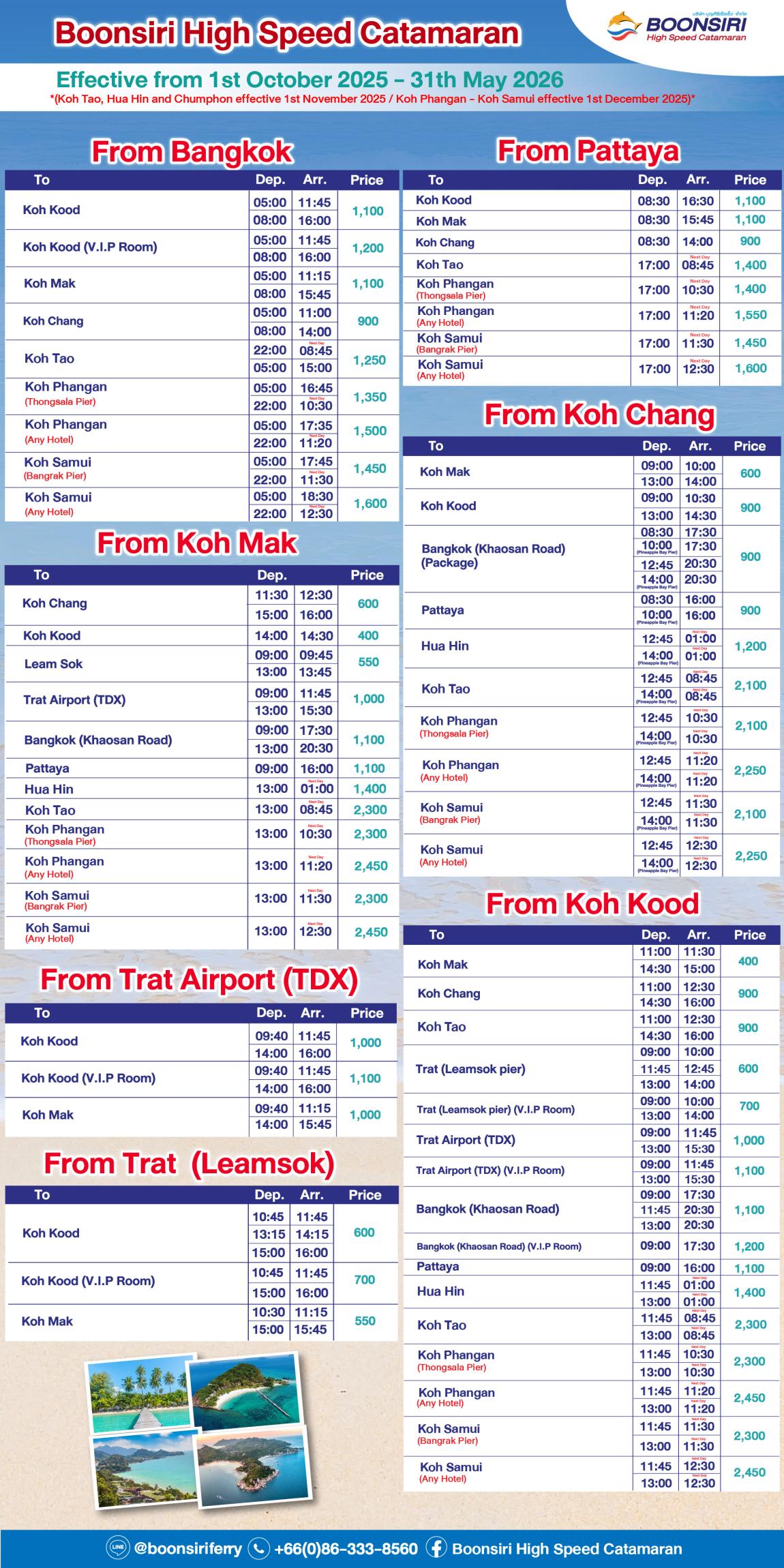 Boonsiri High Speed Ferry catamaran (Thailand office) and Sakhonsiri Company (Cambodia office) are very pleased to serve all tourists traveling with us, thank you.