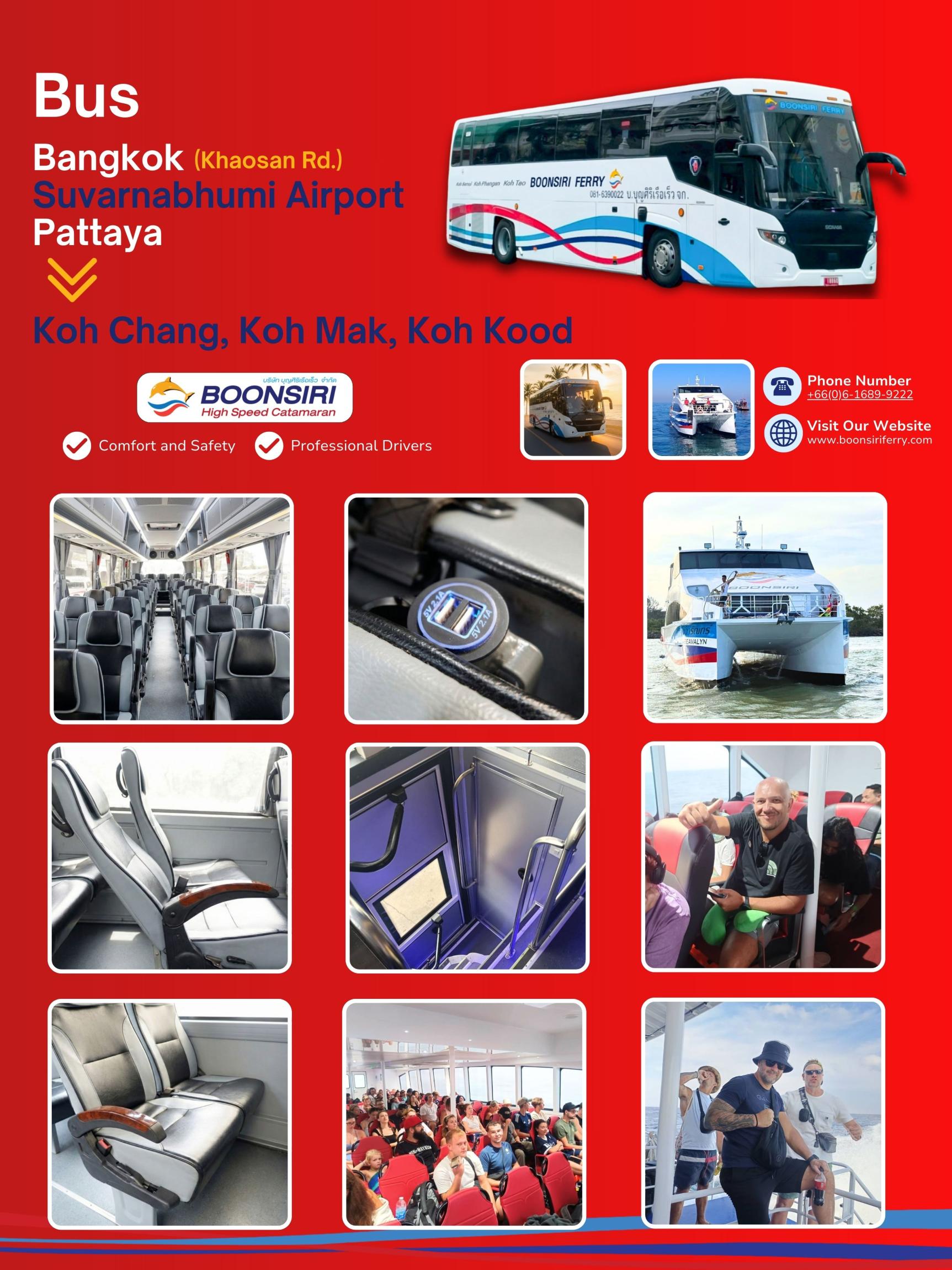 - สนามบินสุวรรณภูมิ (BKK): หากคุณบินมาลงที่นี่ คุณสามารถขึ้นรถบัสของเราได้โดยตรงจากบริเวณสนามบิน นี่คือวิธีที่รวดเร็วที่สุดในการมุ่งหน้าสู่เกาะทันทีที่เครื่องลง