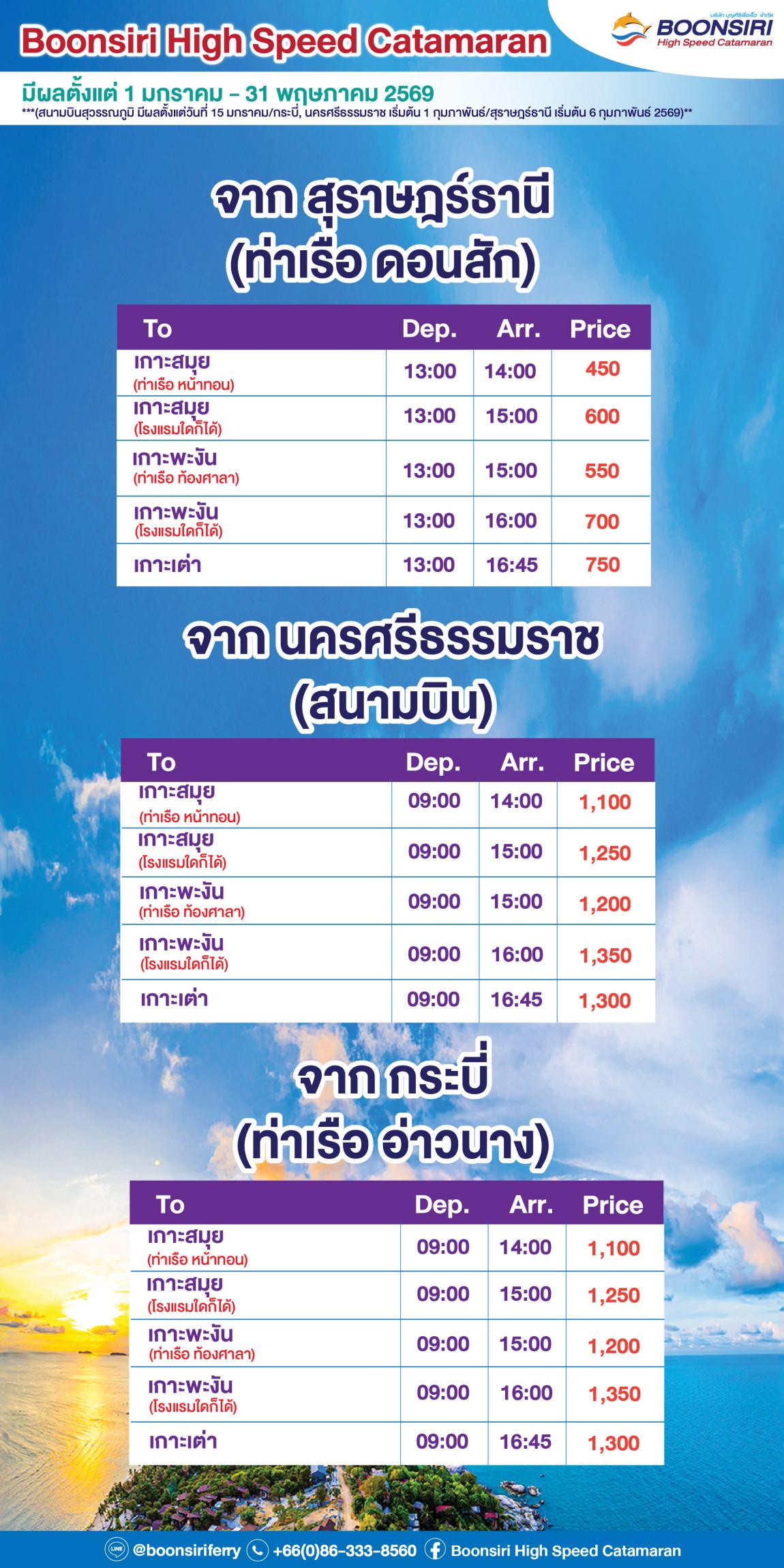 แจ้งได้ที่ email: booking@boonsiriferry.com