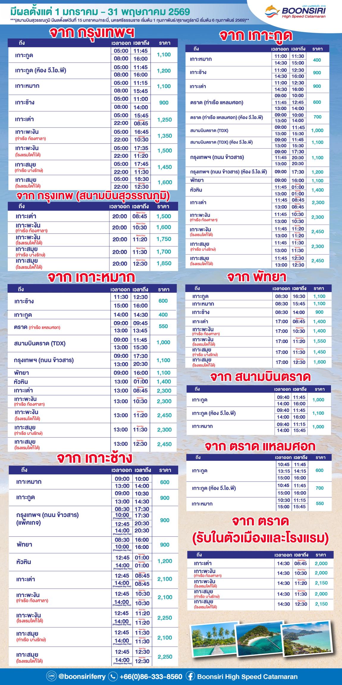 (สำหรับการจองตรงกับ บจก.บุญศิริเรือเร็ว และ บุญศิริซีไลน์ เท่านั้น!!)